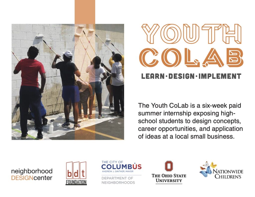 Summer Youth CoLab Program is a six-week design immersion program developed and implemented during my internship at the Neighborhood Design Center (NDC) in Columbus. The program introduced local high school students, many with no prior exposure, to the fields of architecture, urban design, graphic design and community development, while building a more diverse and inclusive pipeline into design professions.